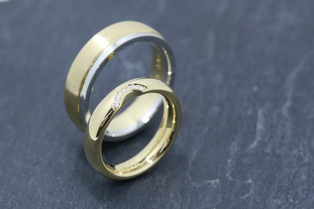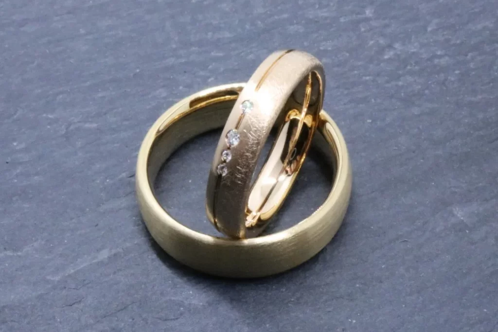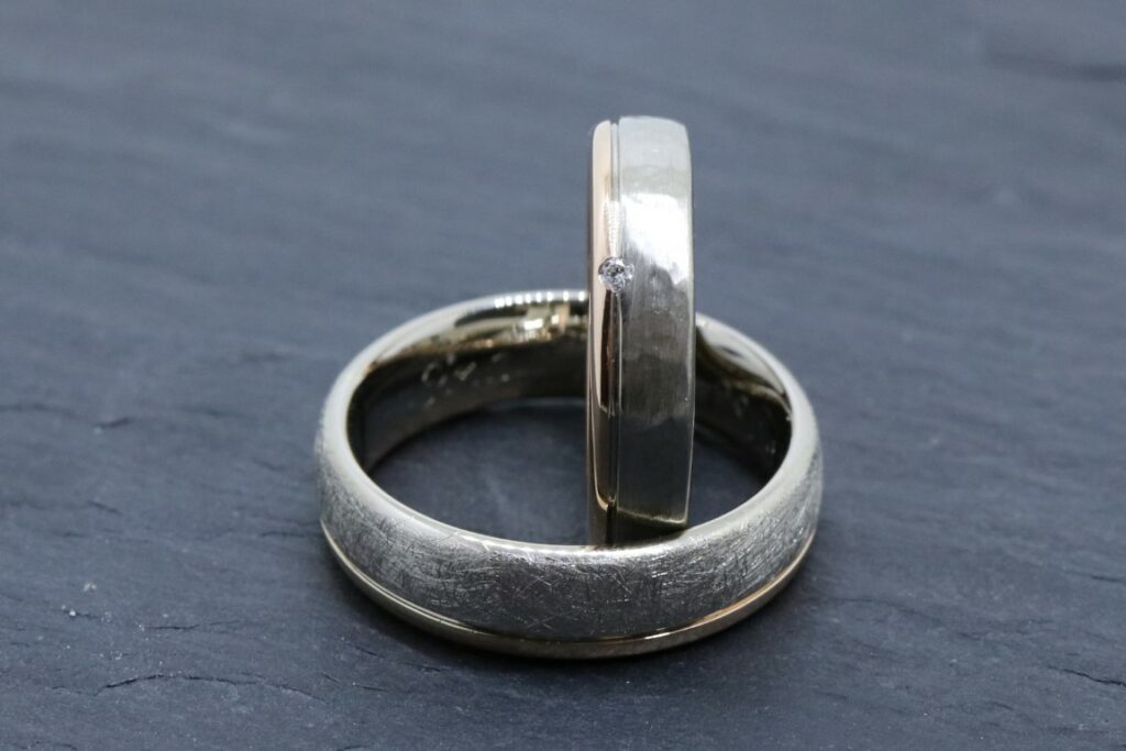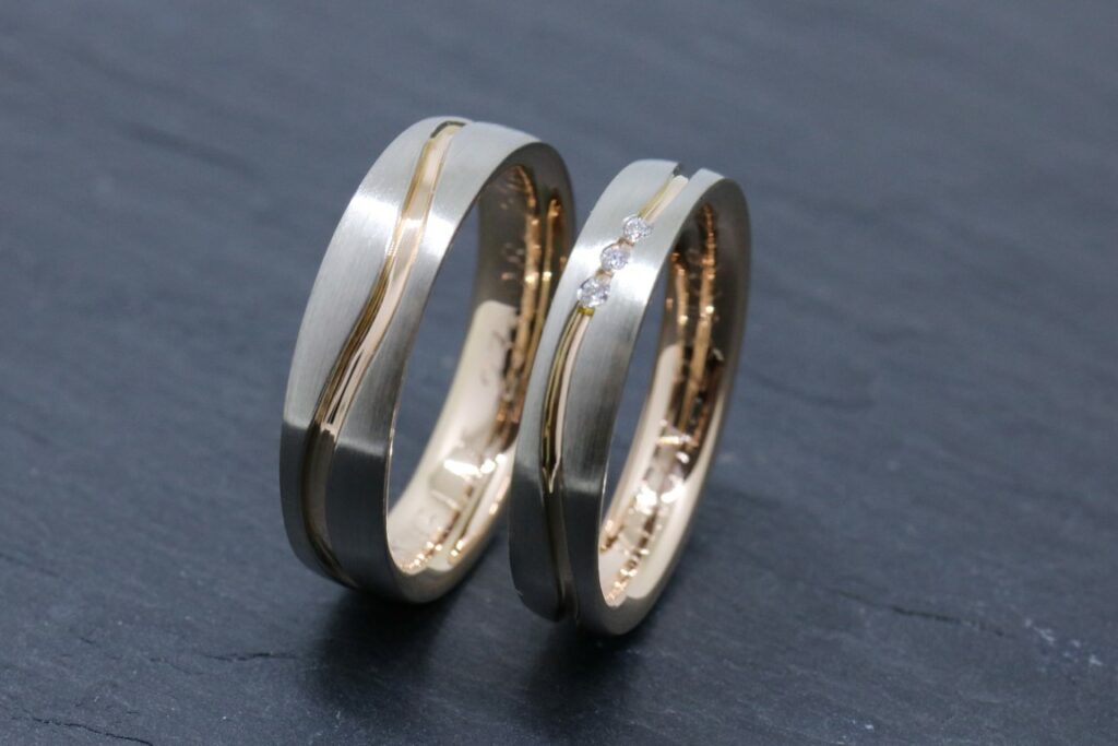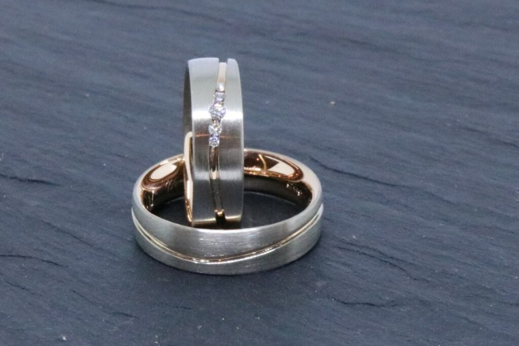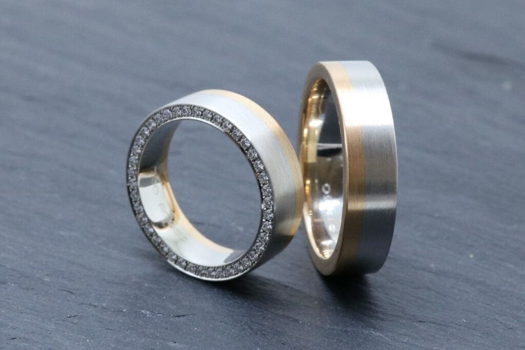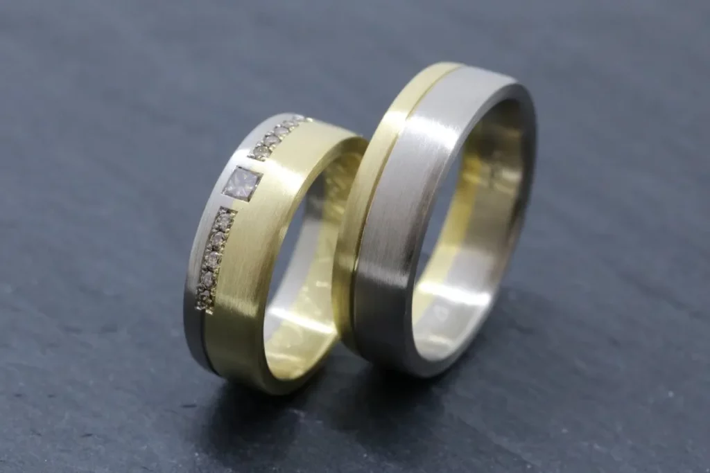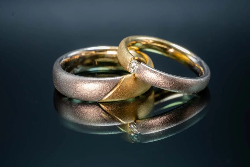 Entdecken Sie in unserer Galerie eine beeindruckende Auswahl an Ringen, die von Hand und mit viel Liebe zum Detail gefertigt wurden. Ob strahlendes Platin, apricotfarbenes Roségold, warmes Rotgold, klassisches Gelbgold, oder gräuliches Weißgold. Jede Legierung hat ihren eigenen Charme, und durch die Kombination verschiedener Farben entsteht etwas ganz Besonderes. Ob klassische Eleganz, moderne Akzente oder außergewöhnliche Bicolor-Designs, die verschiedene Metalle vereinen – es gibt viele Möglichkeiten, Ihre Ringe einzigartig zu gestalten.
