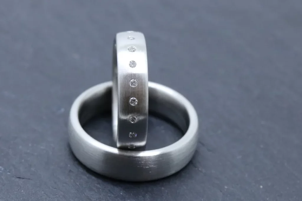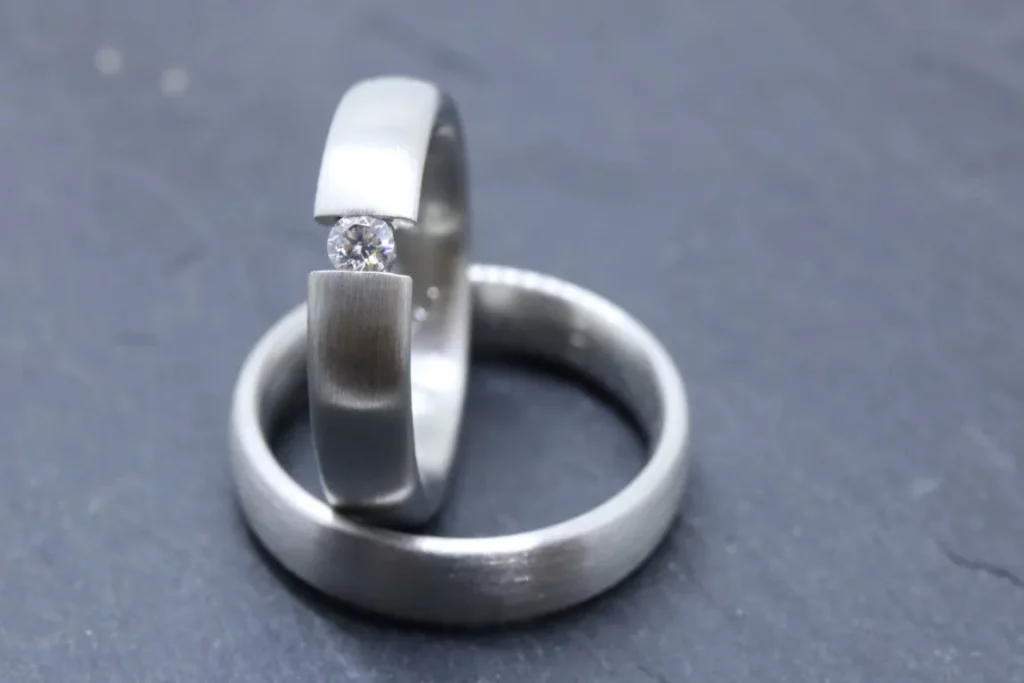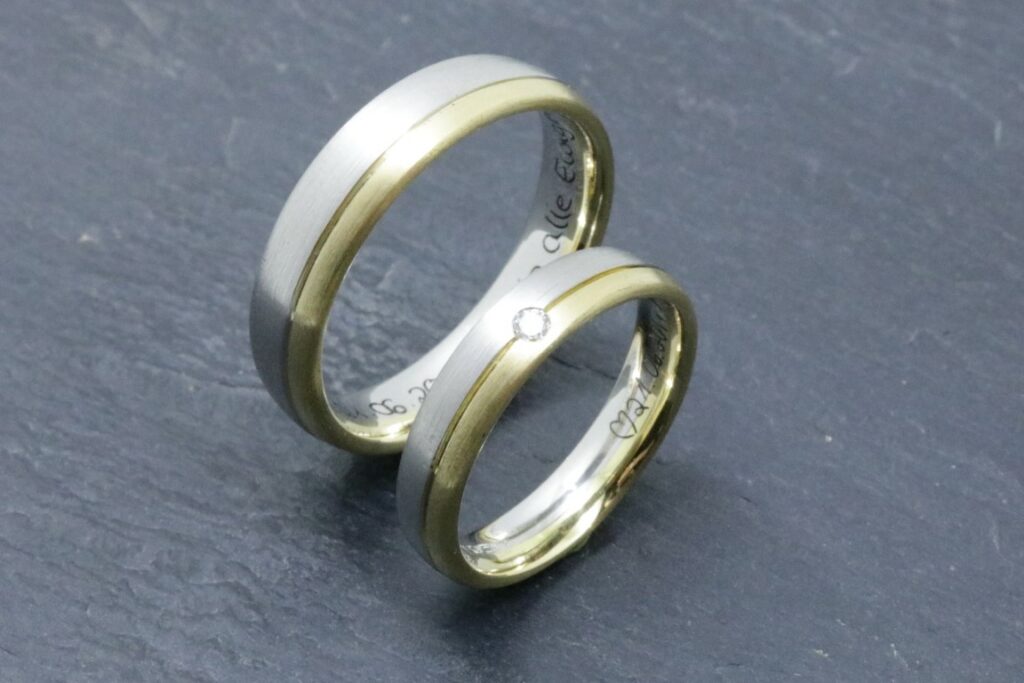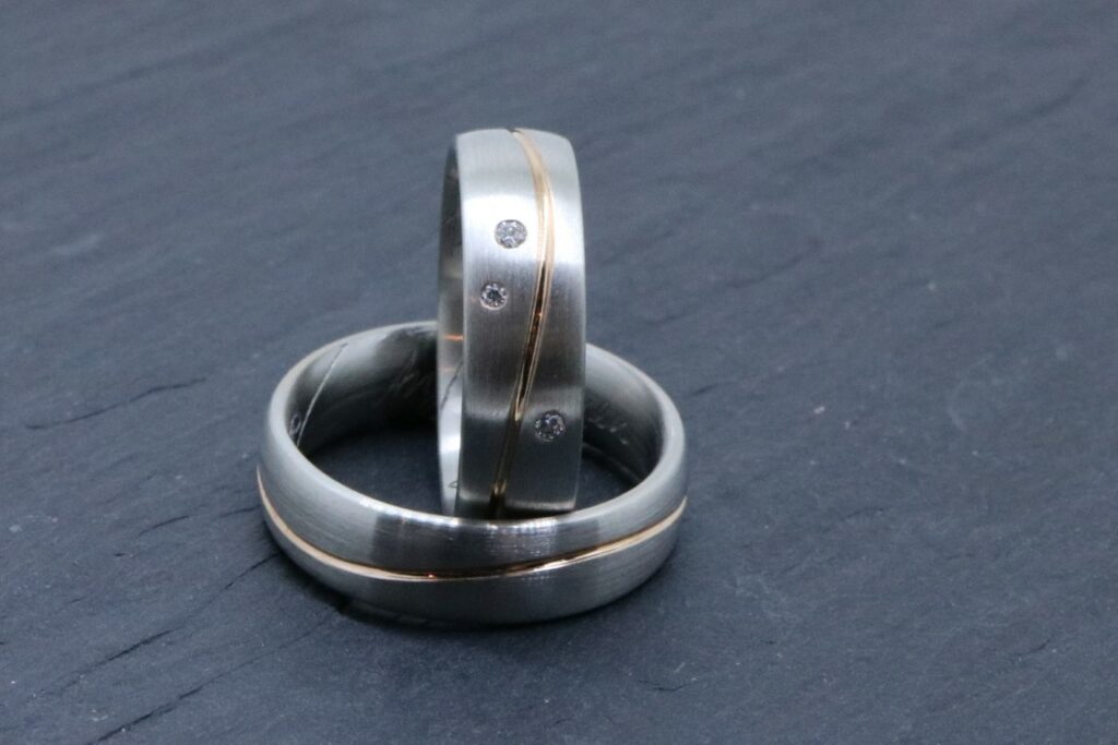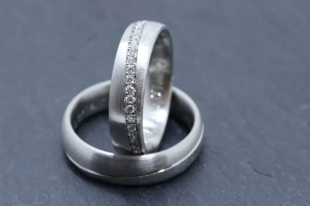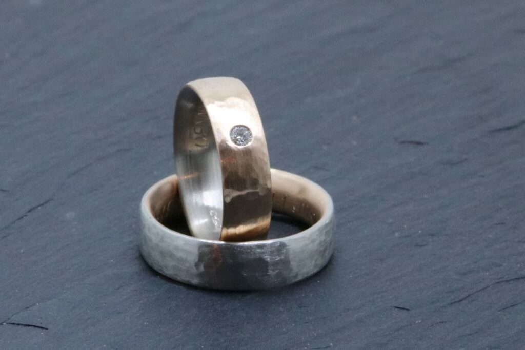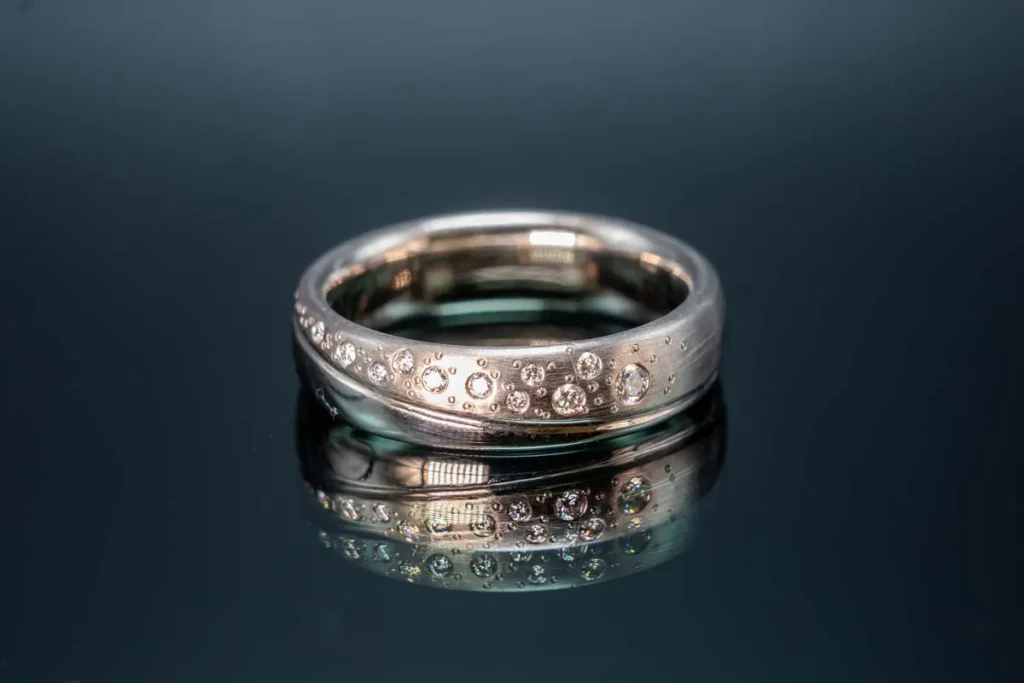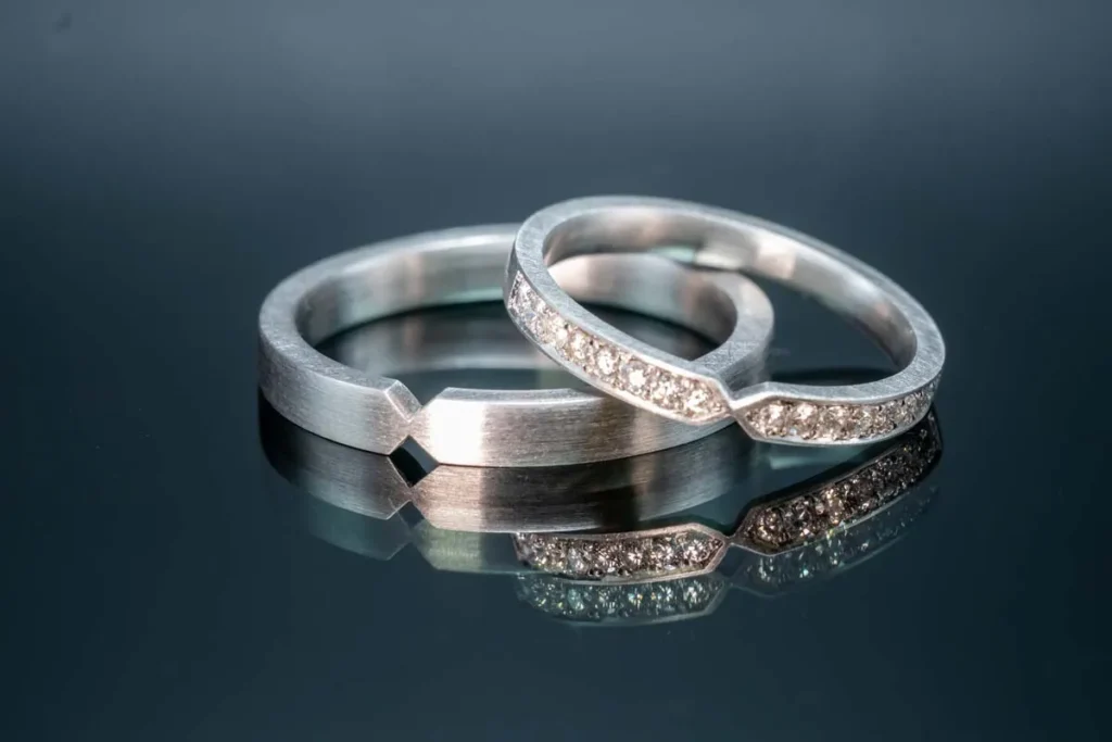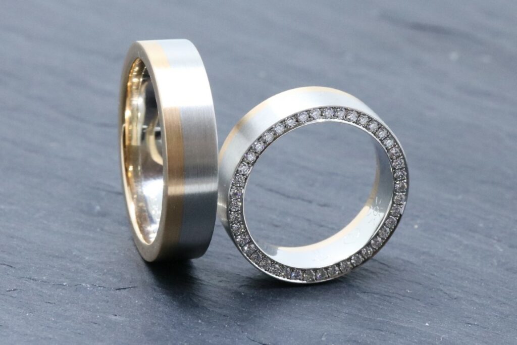 Entdecken Sie in unserer Galerie eine beeindruckende Auswahl an Ringen, die von Hand und mit viel Liebe zum Detail gefertigt wurden. Ob strahlendes Platin, apricotfarbenes Roségold, warmes Rotgold, klassisches Gelbgold, oder gräuliches Weißgold. Jede Legierung hat ihren eigenen Charme, und durch die Kombination verschiedener Farben entsteht etwas ganz Besonderes. Ob klassische Eleganz, moderne Akzente oder außergewöhnliche Bicolor-Designs, die verschiedene Metalle vereinen – es gibt viele Möglichkeiten, Ihre Ringe einzigartig zu gestalten.