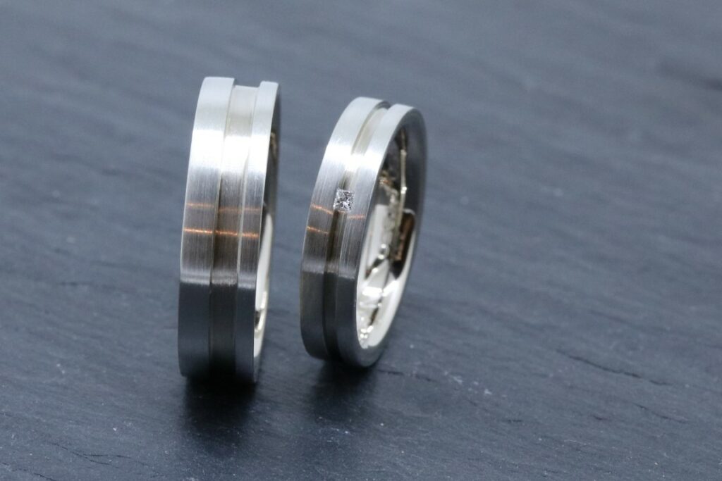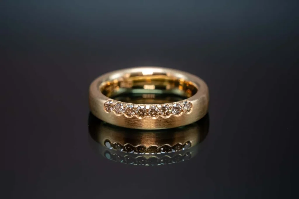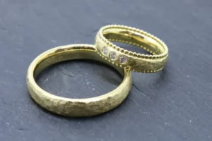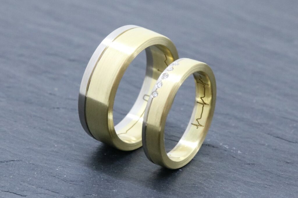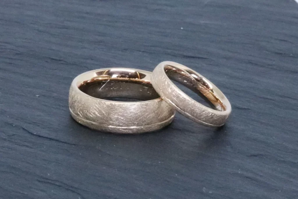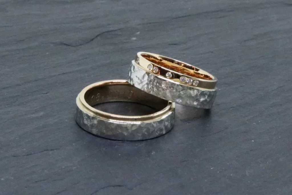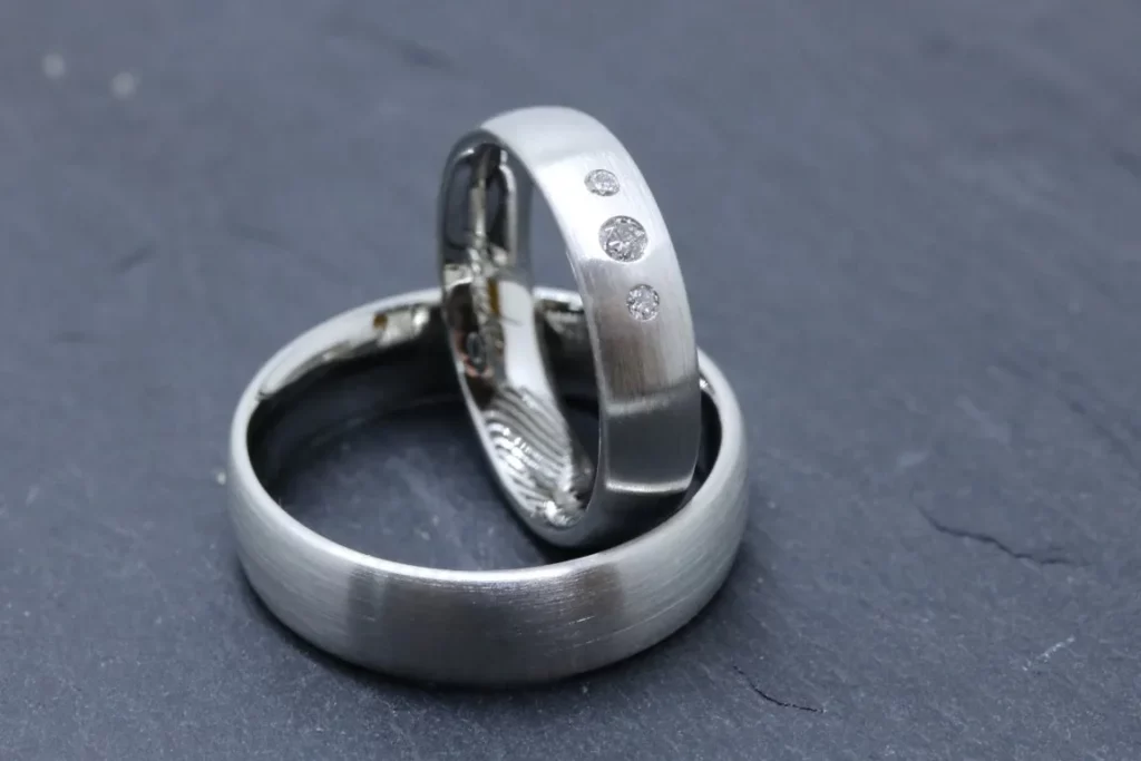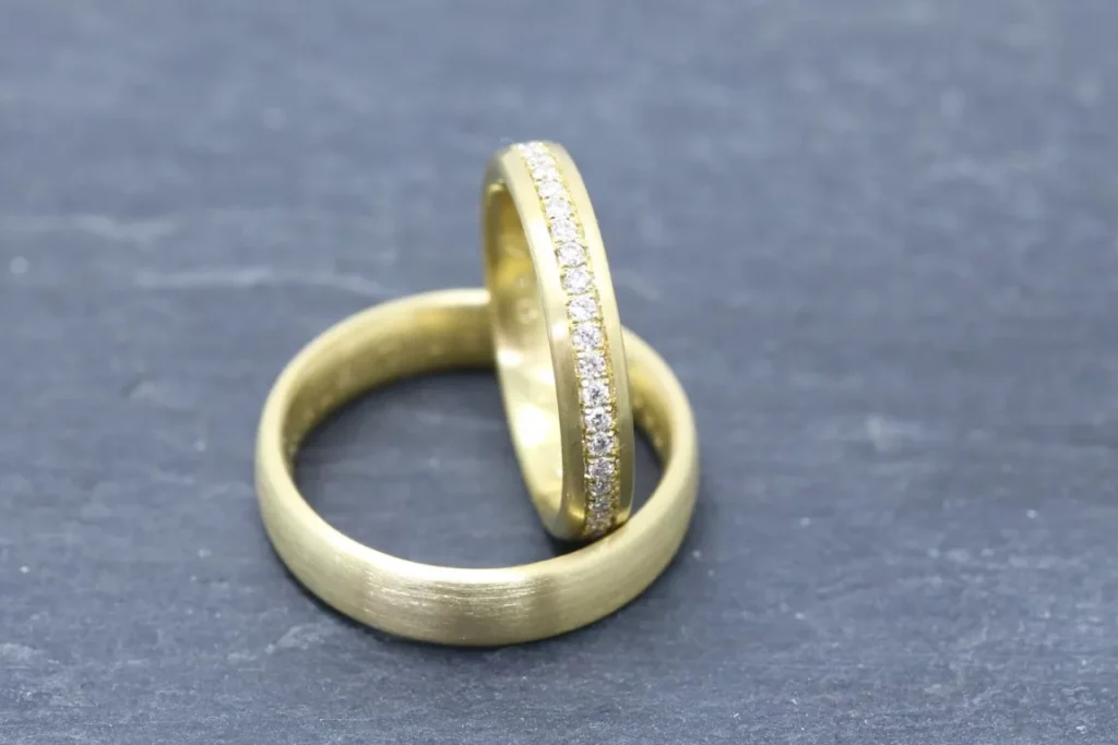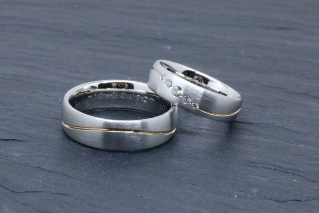 Entdecken Sie in unserer Galerie eine beeindruckende Auswahl an Ringen, die von Hand und mit viel Liebe zum Detail gefertigt wurden. Ob strahlendes Platin, apricotfarbenes Roségold, warmes Rotgold, klassisches Gelbgold, oder gräuliches Weißgold. Jede Legierung hat ihren eigenen Charme, und durch die Kombination verschiedener Farben entsteht etwas ganz Besonderes. Ob klassische Eleganz, moderne Akzente oder außergewöhnliche Bicolor-Designs, die verschiedene Metalle vereinen – es gibt viele Möglichkeiten, Ihre Ringe einzigartig zu gestalten.
