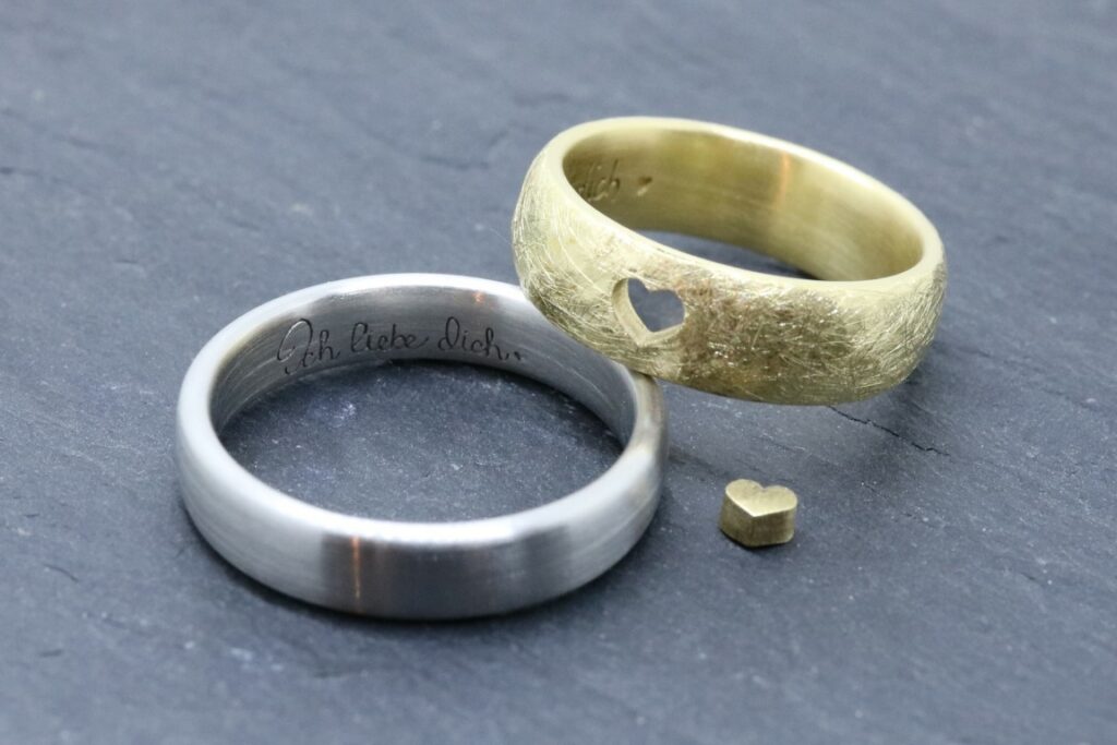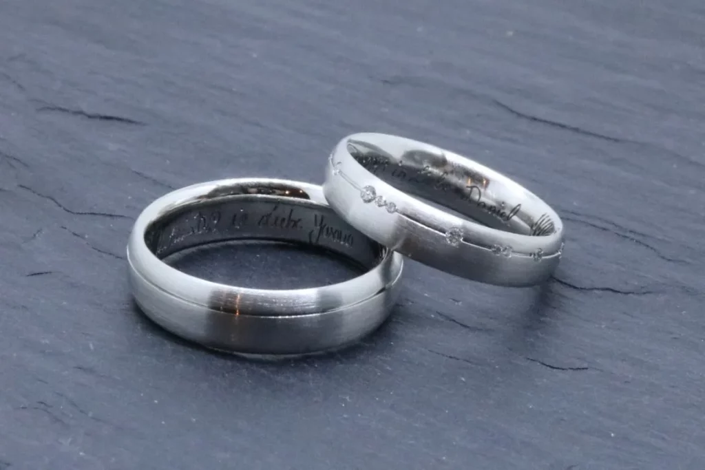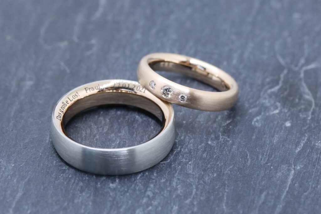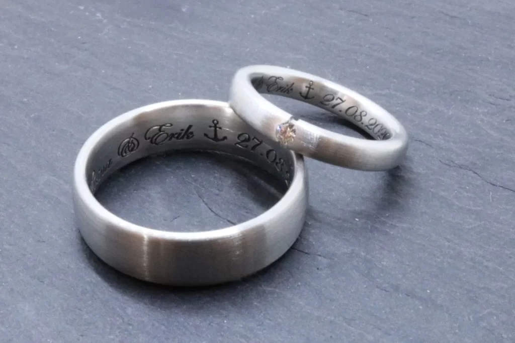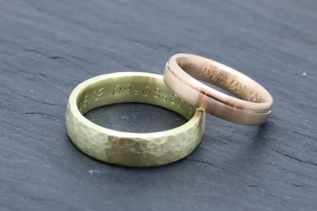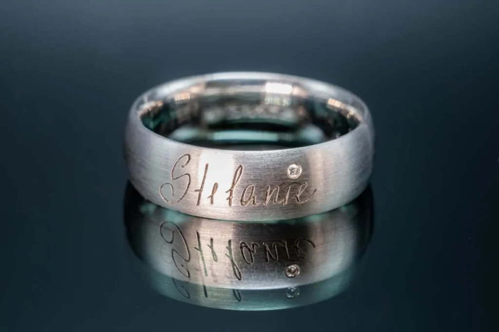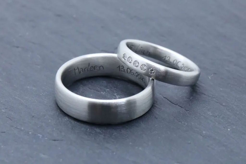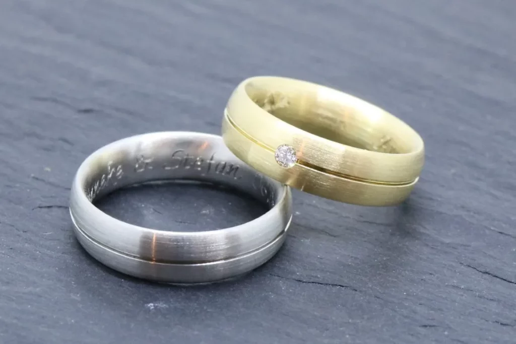 Zusätzlich zur Wahl des Materials und des Designs können Sie Ihre Trauringe mit funkelnden Edelsteinen wie Diamanten oder farbigen Steinen individuell verzieren. Für eine ganz besondere Note bieten wir auch die Möglichkeit, Ihre Ringe mit Gravuren zu versehen. Ob ein besonderes Datum, Ihre Namen oder ein kurzer, liebevoller Spruch – die Gravur macht Ihre Ringe zu einem ganz persönlichen Symbol Ihrer Liebe.