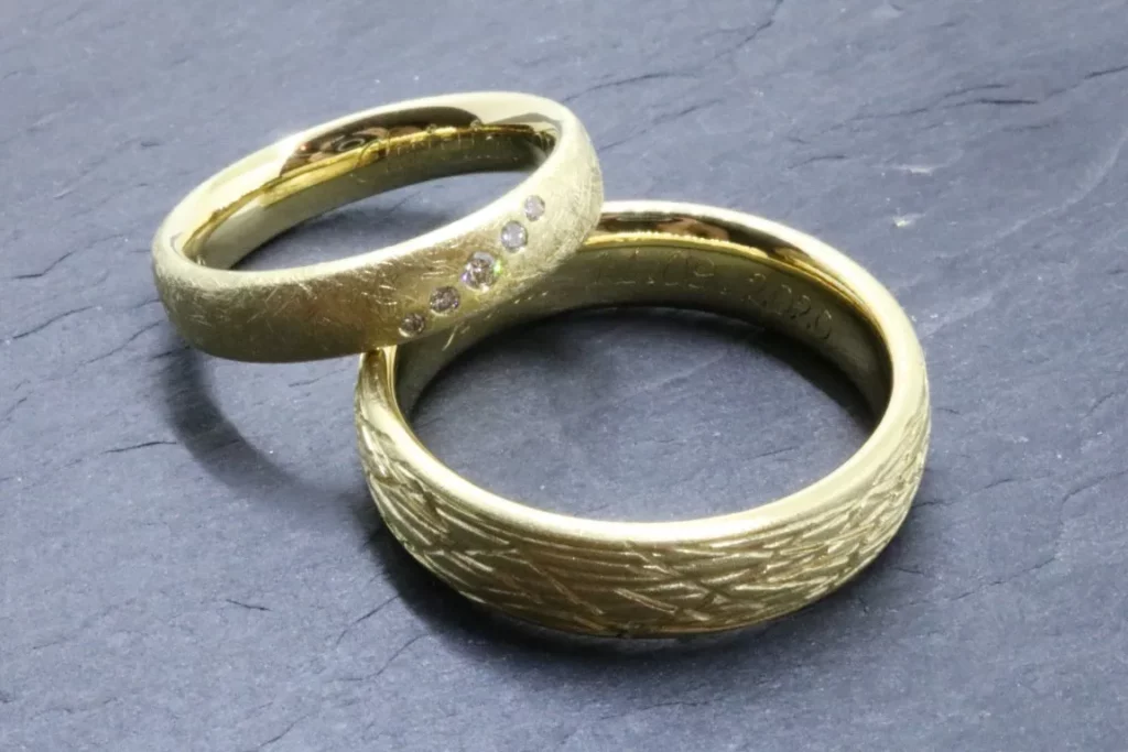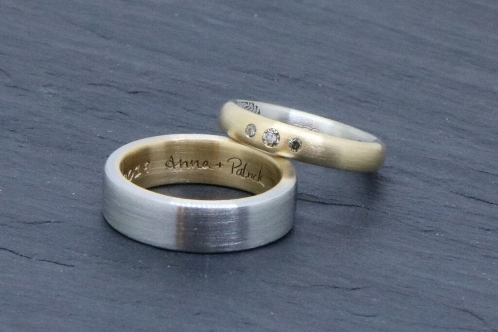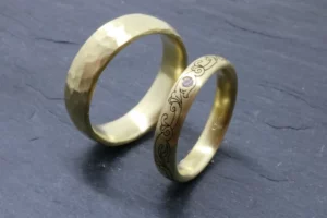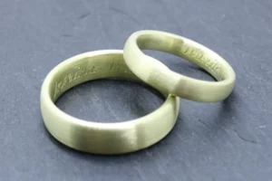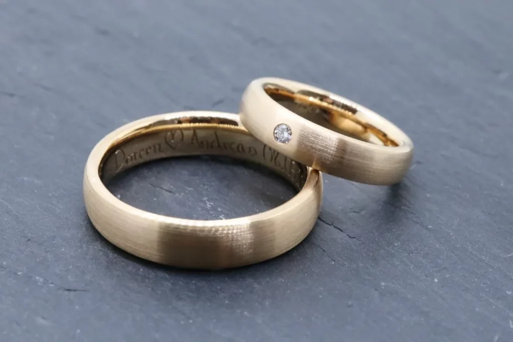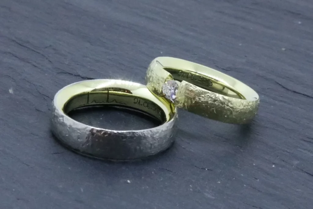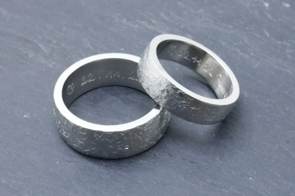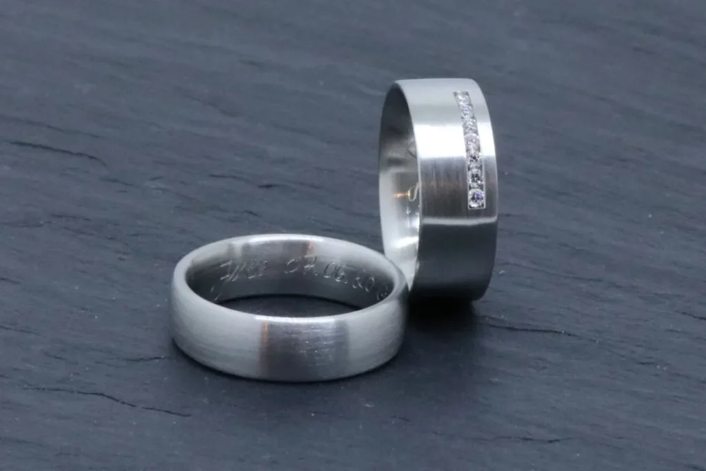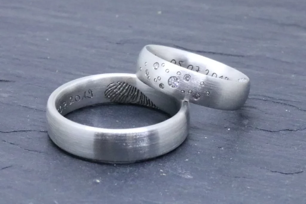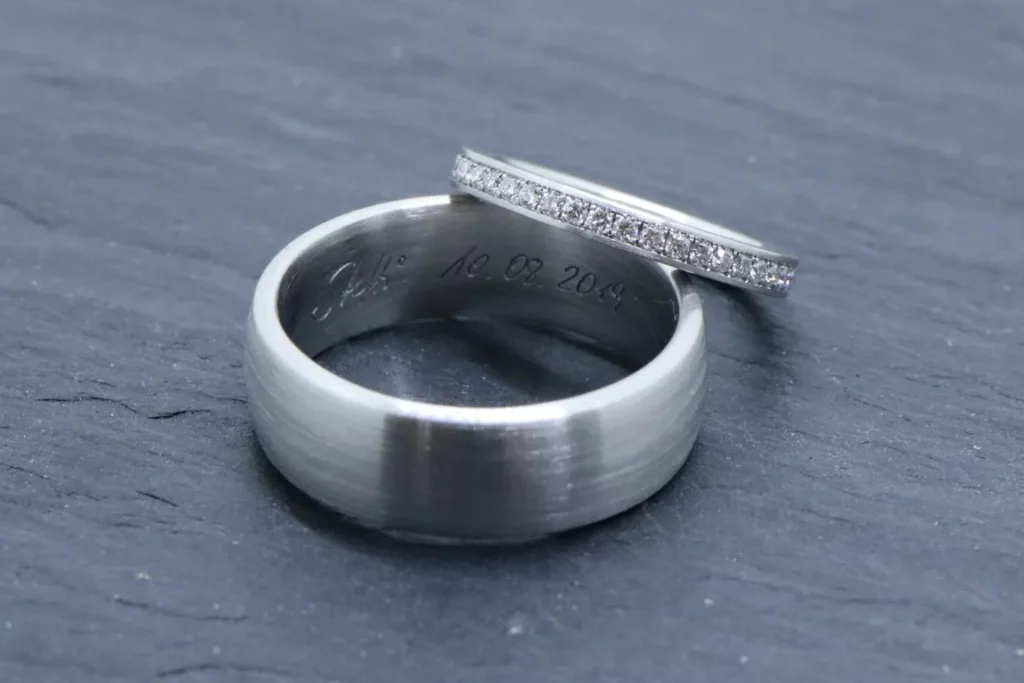 Zusätzlich zur Wahl des Materials und des Designs können Sie Ihre Trauringe mit funkelnden Edelsteinen wie Diamanten oder farbigen Steinen individuell verzieren. Für eine ganz besondere Note bieten wir auch die Möglichkeit, Ihre Ringe mit Gravuren zu versehen. Ob ein besonderes Datum, Ihre Namen oder ein kurzer, liebevoller Spruch – die Gravur macht Ihre Ringe zu einem ganz persönlichen Symbol Ihrer Liebe.