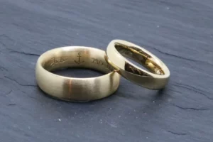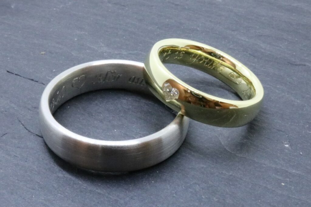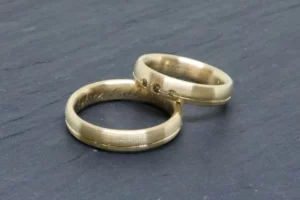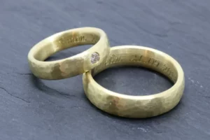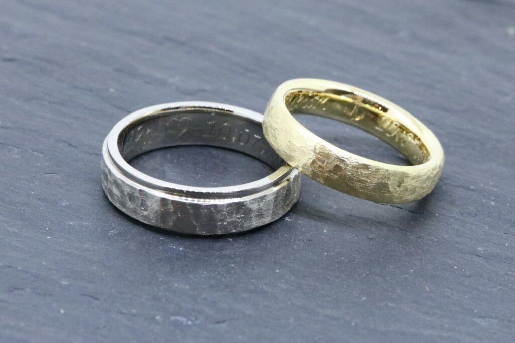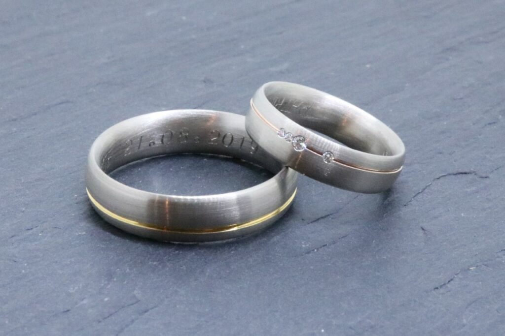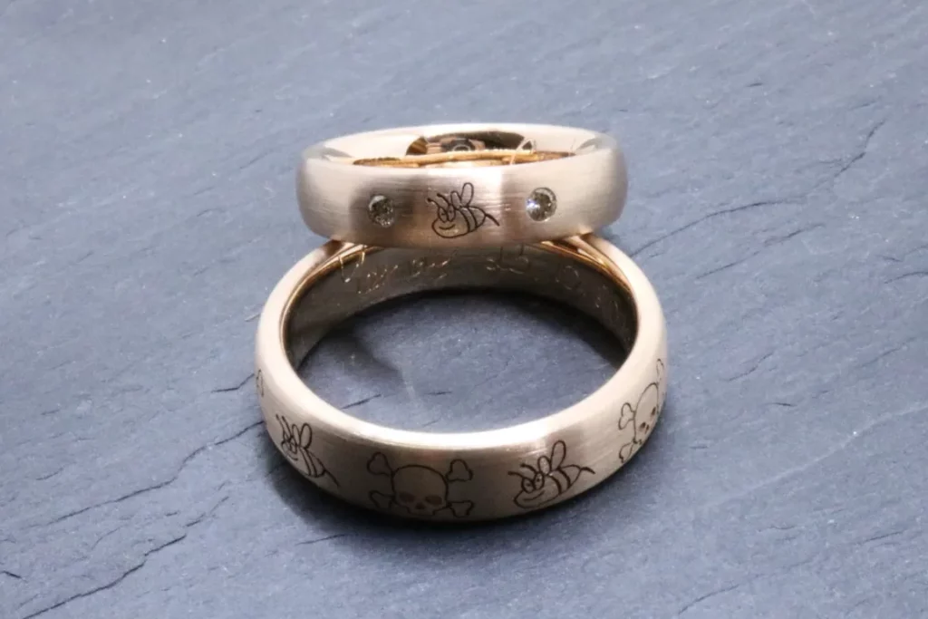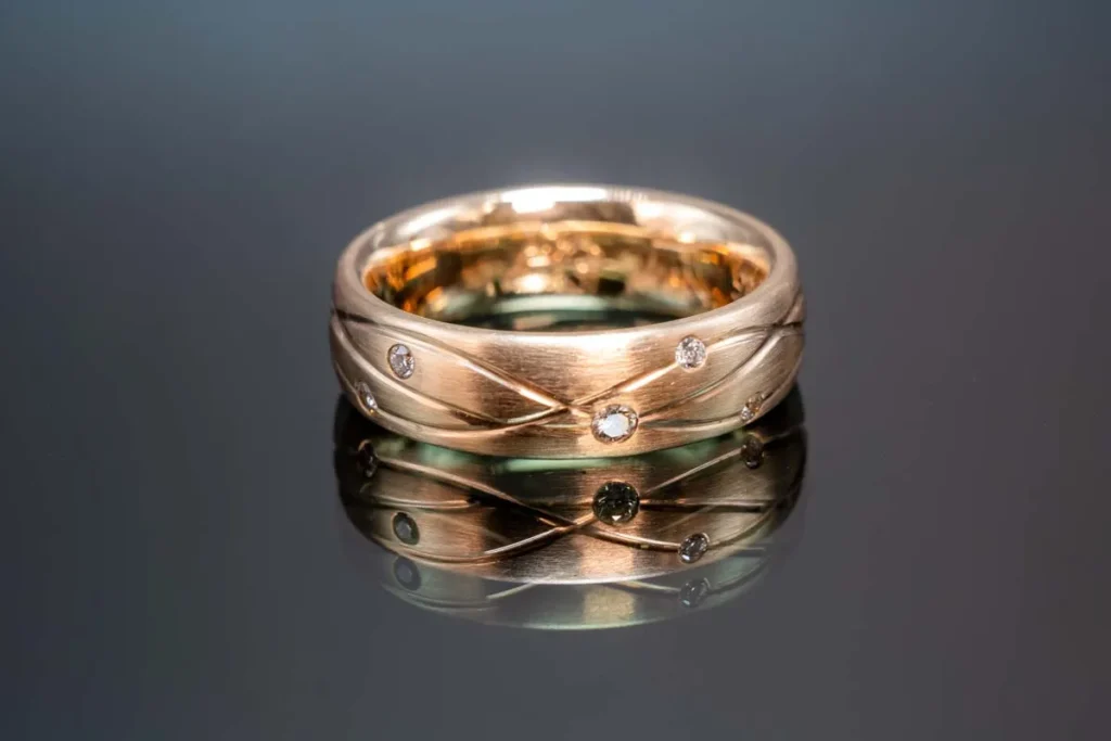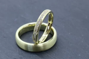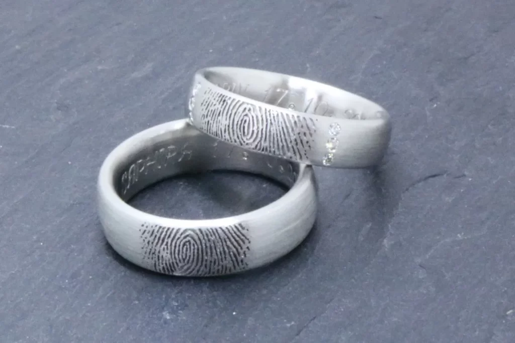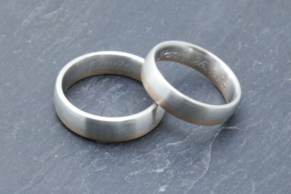 Zusätzlich zur Wahl des Materials und des Designs können Sie Ihre Trauringe mit funkelnden Edelsteinen wie Diamanten oder farbigen Steinen individuell verzieren. Für eine ganz besondere Note bieten wir auch die Möglichkeit, Ihre Ringe mit Gravuren zu versehen. Ob ein besonderes Datum, Ihre Namen oder ein kurzer, liebevoller Spruch – die Gravur macht Ihre Ringe zu einem ganz persönlichen Symbol Ihrer Liebe.